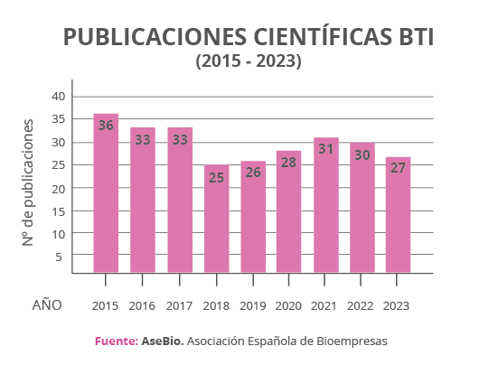 El dato recogido en el Informe 2023 continúa mostrando a BTI Biotechnology Institute como una de las empresas españolas con una mayor dedicación e implicación con la I+D, ya que se trata del noveno año consecutivo en el que la biotecnológica con sede en Vitoria se sitúa como la empresa número uno en producción científica de España.